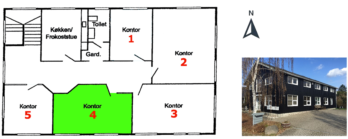 Dejligt lyst kontor med loft til kip, og to vinduer mod Syd, med en fantastisk udsigt over Kohave mose. Dette mellemstore kontor er ideelt til et firma med 2 ansatte. Lejemålets fællesareal omfatter entré, gang, spisekøkken, garderobe & toilet.